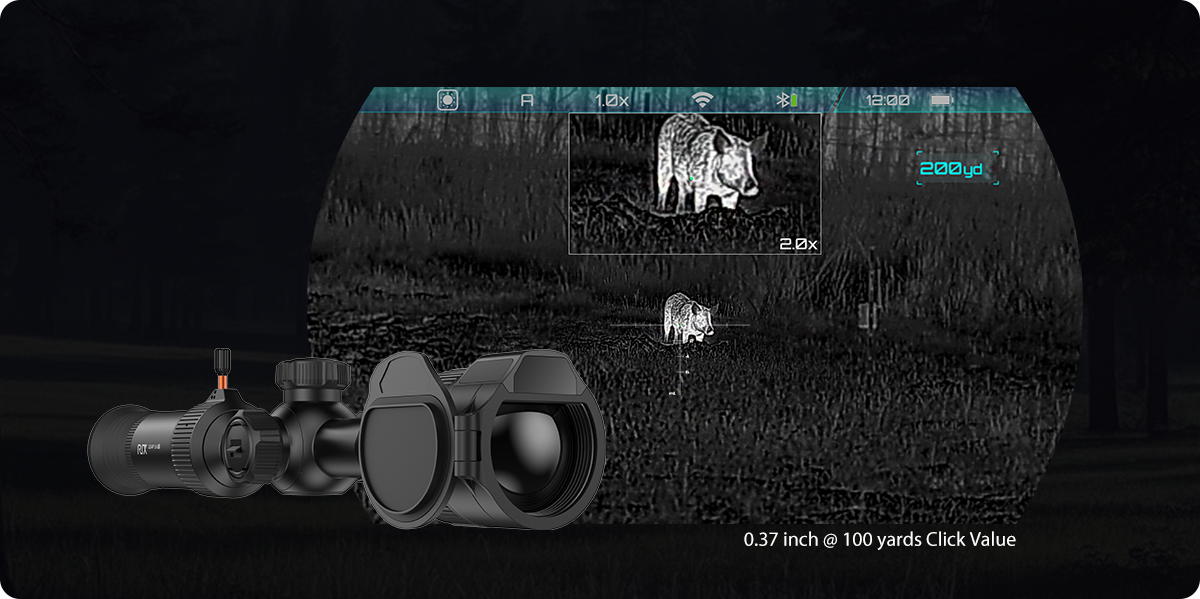 AI-driven pixel simulation technology maintains image sharpness across the magnification range, including during maximum digital zoom operation. This enhancement preserves detail and reduces image degradation at higher magnifications where traditional thermal displays typically suffer clarity loss.